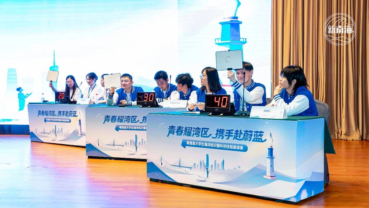 本次赛事由广东省自然资源厅(广东省海洋局)、广东省海防委员会办公室、共青团广东省委员会、自然资源部南海局主办;广东省自然资源厅事务中心、广东省海洋发展规划研究中心、自然资源部南海海域海岛中心、广东海洋协会承办;广东南油控股集团股份有限公司、中船黄埔文冲船舶有限公司、中国长江三峡集团有限公司广东分公司协办。赛事旨在普及海洋知识、提升公众海洋意识、推动海洋生态保护,助力实现人与自然和谐共生,同时为粤港澳大湾区海洋经济发展培育青年人才。 赛事汇聚了第15届全国海洋知识竞赛广东赛区大学生选拔赛决赛前三名的队伍:海洋刺客队(广东海洋大学)、蓝鲸队(岭南师范学院)、汕海扬帆队(汕头大学),香港赛区大学生代表队南海阿古茹队和香港大学生选拔赛决赛中其他优秀学生们组成的珊瑚队,以及澳门大学的濠海澳秘队。 比赛分为两大环节:海洋知识问答与船模制作及竞速比赛。知识问答环节设置共同答题、抢答题和风险题三个部分,题目涵盖海洋生态、资源开发、环境保护及海洋工程技术等多个领域,难度逐级提升。选手们沉着应对,展现出扎实的知识储备与临场应变能力。最终,汕海扬帆队以360分的高分领先。