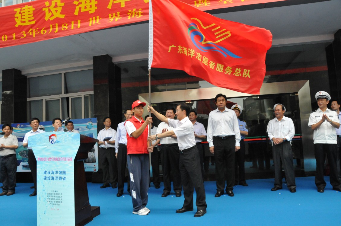 当天,经过半年多筹备的广东海洋志愿者服务总队正式成立。共青团广东省委员会池志雄副书记为广东海洋志愿者服务总队授旗。志愿者代表宣读了《2013广东海洋志愿者服务活动倡议书》并宣誓。广东海洋协会受广东省海洋与渔业局委托,作为广东海洋志愿者服务总队基地。以后将竭诚致力于广东海洋志愿者活动,并不断扩大海洋志愿者队伍。