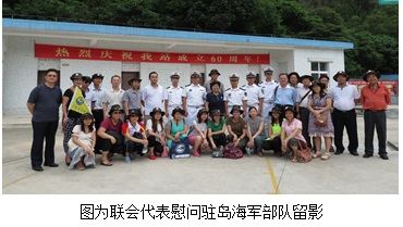 7月18日,广东省海洋渔业局局属协会联会应广东省双拥工作领导小组办公室、广东省社会组织管理局《关于组织开展“双百拥军行”活动的通知》(粤拥办〔2013〕1号)的文件精神,经请示省海洋与渔业局同意,在纪念延安双拥运动70周年之际,由广东海洋协会牵头,组织了局属9个协会的代表40多人组成“拥军团”,会同惠东港口海龟国家级自然保护区管理局的工作人员一同到大星山观通站(海军92619部队;空军95022-69部队)开展“双百拥军行”慰问活动。