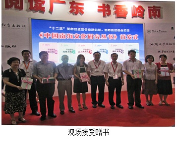 8月16日,由南方出版传媒股份有限公司、广东经济出版社联合广东省珠江文化研究会联合主办的《中国南海文化研究》丛书首发式作为“2013南国书香节”的重点活动之一隆重举行。 首发式邀请了学术界的各专家出席,广东省委宣传部顾作义副部长也亲临活动现场。丛书的主编及作者在活动上简要的介绍了书的基本概况。我会常务副会长麦贤杰及秘书长王沙滨应邀出席并发表了祝贺讲话。